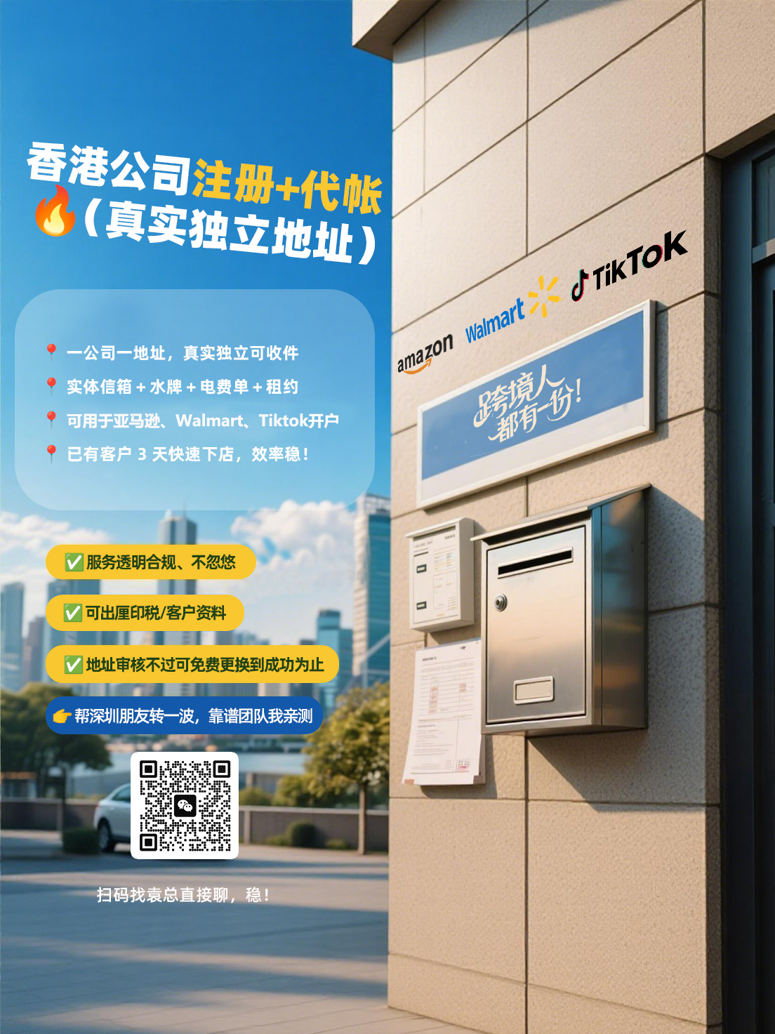 香港公司注册+真实独立地址|亚马逊/沃尔玛/TikTok稳过审
